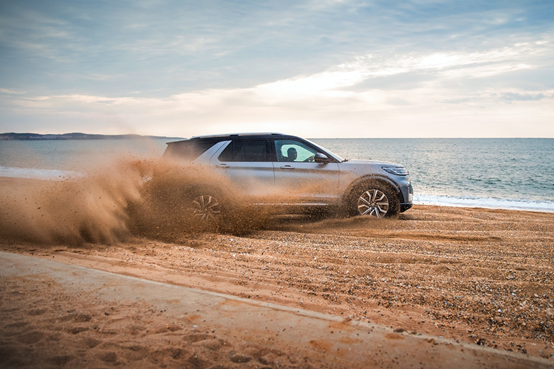 金石滩沙滩一带路况多变,全新福特探险者的智能四驱技术,实现两驱/四驱毫秒级切换,搭配多地域的TMS地形管理系统,可转换六大驾驶模式,无论是金石滩夹杂着贝壳、沙砾的柔软沙地,还是冬季东北湿滑的冰雪路面,均可轻松应对;50:50前后轴平衡配重,配合双球节弹簧减震支柱前悬架和整合式多连杆后悬架,及前后全铝合金下摆臂,实现媲美轿车的5.9米转弯半径,让操控更精准从容;高强度笼型车身,最高强度可达1700Mpa,600Mpa以上高强度钢占比超50.8%,带来稳定紧致的驾控快感,舒心安享每一程。