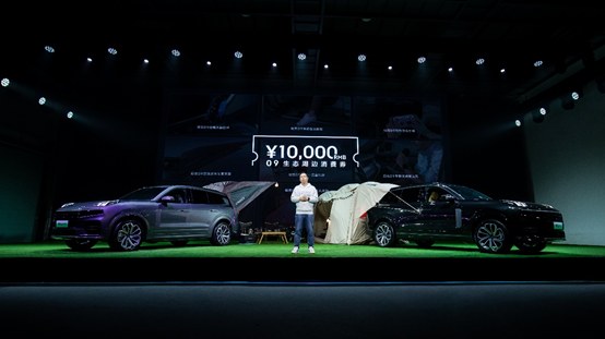 聆听用户需求,领克积极拓展周边生态,致力于为用户打造更美好的出行生活。在2022年12月31日前,成为领克09车主的所有新老用户,均可获得价值10,000元的09生态周边消费券。消费券可用于购买09丰富的随车装备和露营装备。