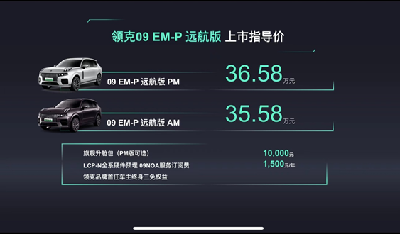 领克09 EM-P远航版PM上市指导价:36.58万元