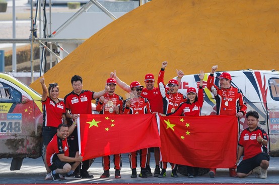 最终北京越野车队车手张国宇/让·皮埃尔斩获T1+组总成绩第10名;首次参赛的訾云亮/沙贺同样收获满满,不仅斩获T1+组总成绩获第14名,并夺得本届达喀尔拉力赛的新人王奖项。