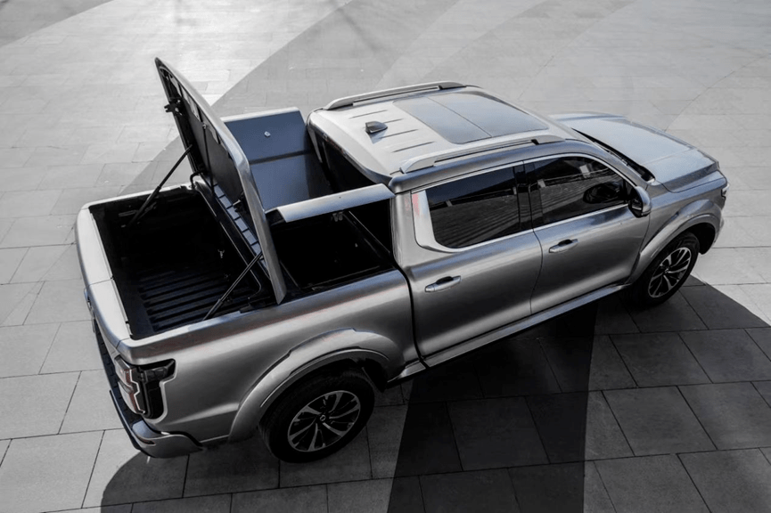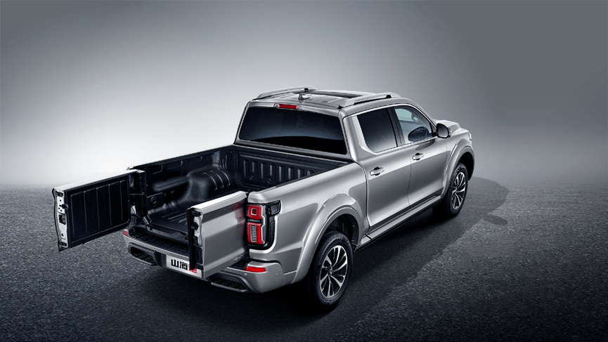 山海炮首创后车箱挡板对开+平开设计,提供多场景使用便利性。挡板对开可让用户在户外存取物品时,更为得心应手;而挡板平开时,用户完全可以坐在挡板上细细品味户外生活的美好。此外,山海炮采用国内首创三开门平盖式防雨棚,电动控制,可拆卸隔断,增加空间百变性,玩转全场景皮卡生活。