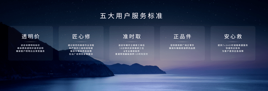 2023年,为继续提升用户服务体验,本次品牌之夜,长安马自达正式发布五大服务标准——第一,透明价:所有进店消费明码标价,维保费用透明并逐项说明,确保客户明明白白享受服务。第二,匠心修:通过规范的维修作业流程和严格的三级检验制度,确保车辆保养和故障在出厂前得到妥善解决。第三,准时取:进店车辆开立维修工单后,10分钟内安排维修工位&专业维修技师,普通常规基础保养1小时内交付。第四,正品件:我们坚持使用原厂纯正零件,确保车辆维修保养的品质。第五,安心救:我们提供7*24小时道路救援服务,快速到达现场,并为客户提供应急保障。