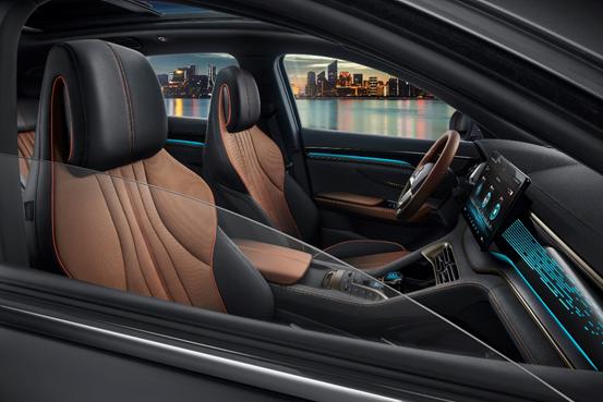 六、全球首款量产渐变内饰:整体采用多层悬浮式设计,悬浮感由中控面板延伸到两侧,在悬浮方向盘、精妙储物空间、风琴式悬浮出风口等处处体现悬浮理念,搭配自然渐变内饰的悬浮层次感,氛围灯漫反射营造出的双层悬浮效果,让内部空间延伸更加自然、轻量化,实现美学设计、工程制造与功能实用性的完美融合。
