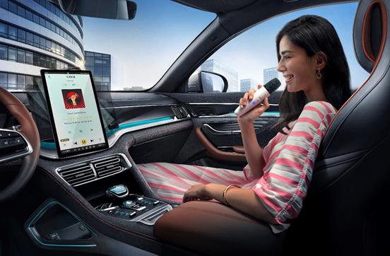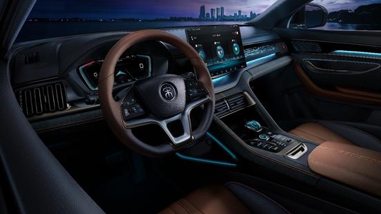 七、全球首创沉浸式副驾智慧数字交互面板:具备温度调节、音乐播放、空气净化等多形态动效表达,与仪表、中央旋转显示屏形成完整的交互带,贴心人性化体验让生活更具仪式感。