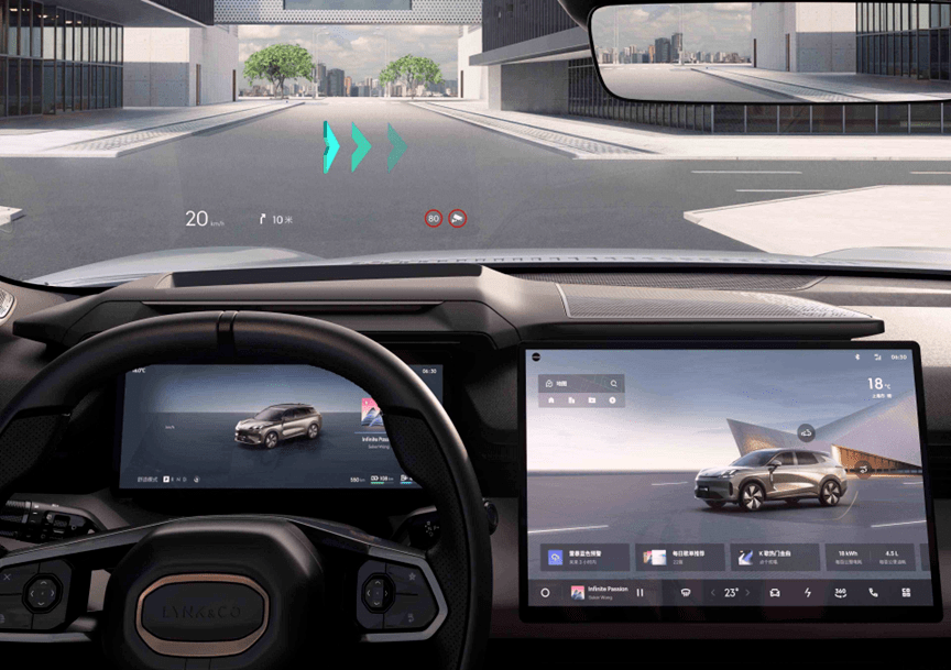 领克08还配备了量产车中尺寸最大的92英寸无界AR-HUD,不仅同级独有,就算越级也没有对手。它拥有2K清晰度,堪称像素和视距匹配的最佳分辨率,可通过与TOF摄像头的眼球追踪联动,自动调节画面高度,更拥有10米成像距离的AR-HUD,在开启全方位道路导航时也绝不眩晕,更可化身最大的汽车AR影幕,让领克08动可为沉浸驾舱,静可为巨幕影院。