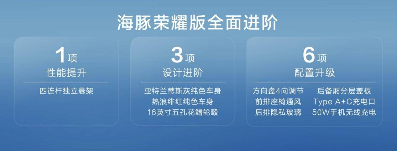 海豚荣耀版还新增302KM活力版,满足通勤距离短、对续航里程需求没那么长的用户选择。
