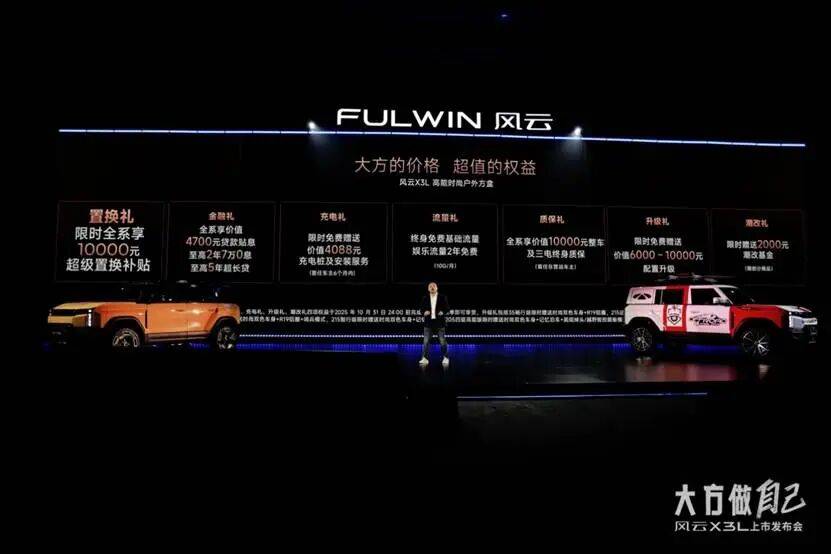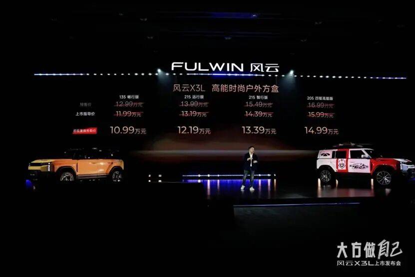 9月17日,风云X3L于成都举行上市发布会,正式售价为10.99万元起,共推出四个版本车型,135畅行版售价10.99万、215远行版售价12.19万、215智行版售价13.39万、205四驱高能版售价14.99万。同时,六大官改版型也惊艳亮相,释放终极个性,演绎方盒的无限可能。