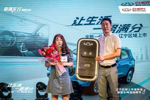 奇瑞汽车营销公司东北大区辽宁区域销售总监于伟旗先生为首位车主颁发钥匙