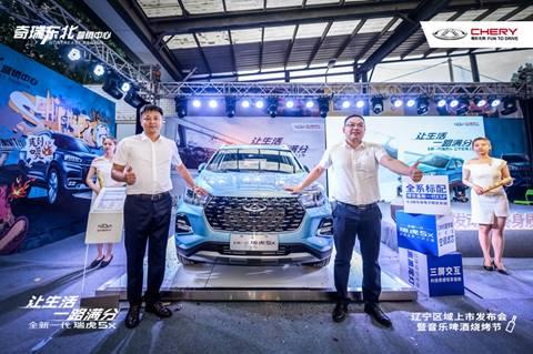 奇瑞汽车营销公司东北大区总经理陈龙先生和沈阳优易卡汽车销售有限公司董事长王兵先生共同为新车揭幕