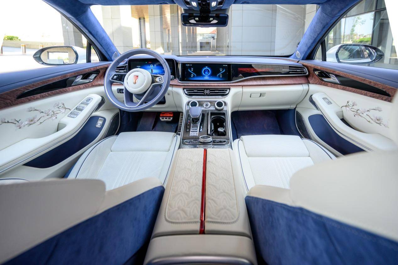 在新红旗H9+定制的双色车身两侧,由工匠手工绘制的金色或白色腰线,在低调优雅中勾勒出昂首挺胸的姿态。专属定制的轮辋造型,成为用户尊崇身份的亮丽点缀。车内,300余颗点阵灯光组成的“旗晖星空”顶饰流光炫彩,让出行生活雅致于外、精致于心。“梅花”、“白玉兰”、“山水”等顶棚和车门非遗刺绣装饰,畅情表达用户对中国传统文化的寄托。极为多样的车内豪华定制配置、丰富细腻的至臻享受,显示出中国新高尚情怀人士的非凡品位。在用户选择H9+定制项目时,多种美学版本与丰富的文化元素定制组合,可自由搭配出独具个性的美学天地,彰显高尚不凡的中国风范,全面满足用户对传统文化的热情、对美妙出行的追求。
